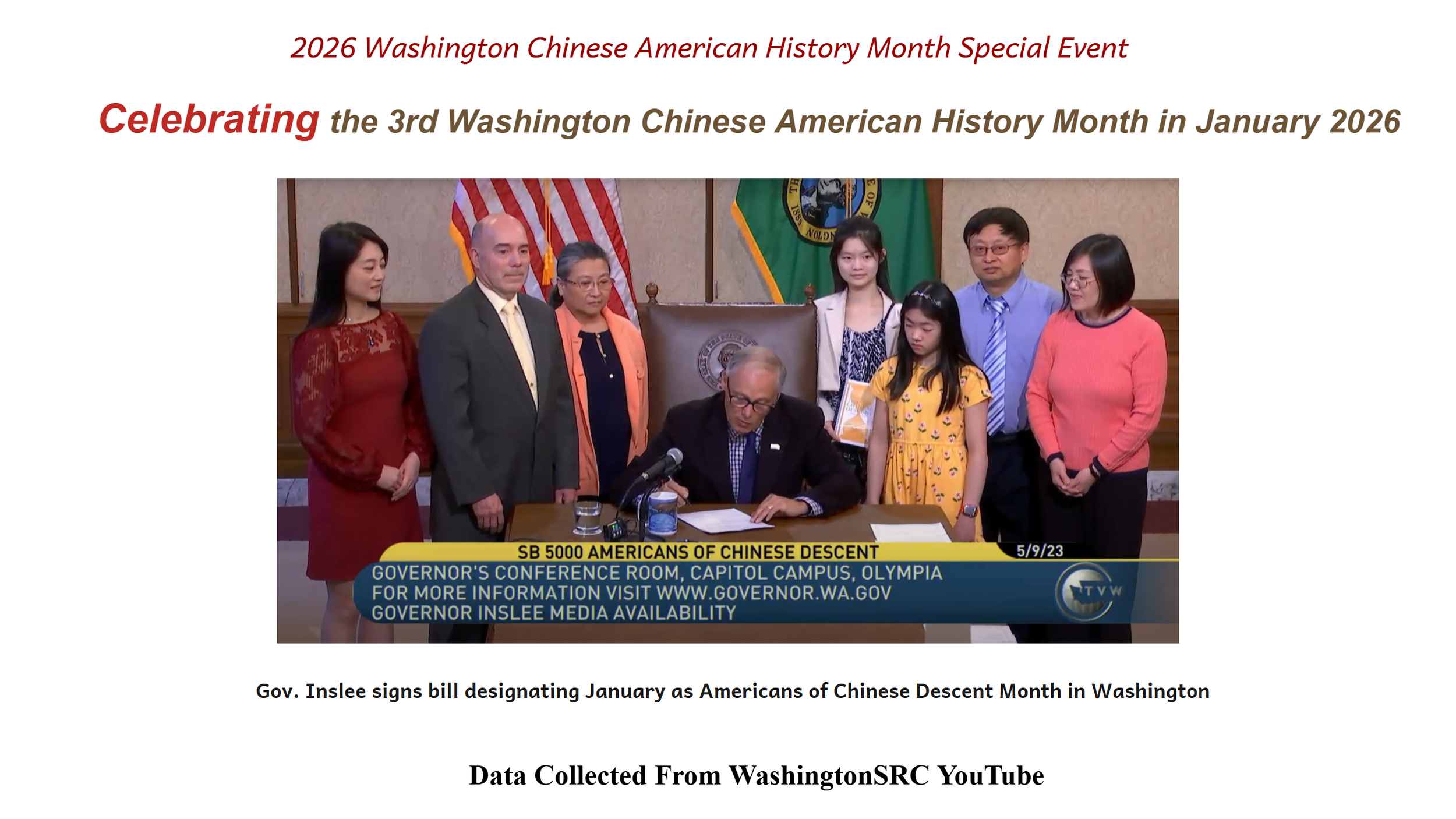 In 2023, Washington State officially passed SB5000, establishing January as Americans of Chinese Descent Month to commemorate, educate, and raise public awareness about the contributions and experiences of Chinese Americans in the state. The bill also encourages schools to conduct related educational activities to promote respect, understanding, and historical continuity. Building on two years of community-driven programs exploring Chinese American history and identity, an online event was held on January 18, 2026. Centered on understanding Chinese American history, confronting present-day challenges, and envisioning future opportunities, the event brought renewed contemporary significance to the third year of this statewide initiative.